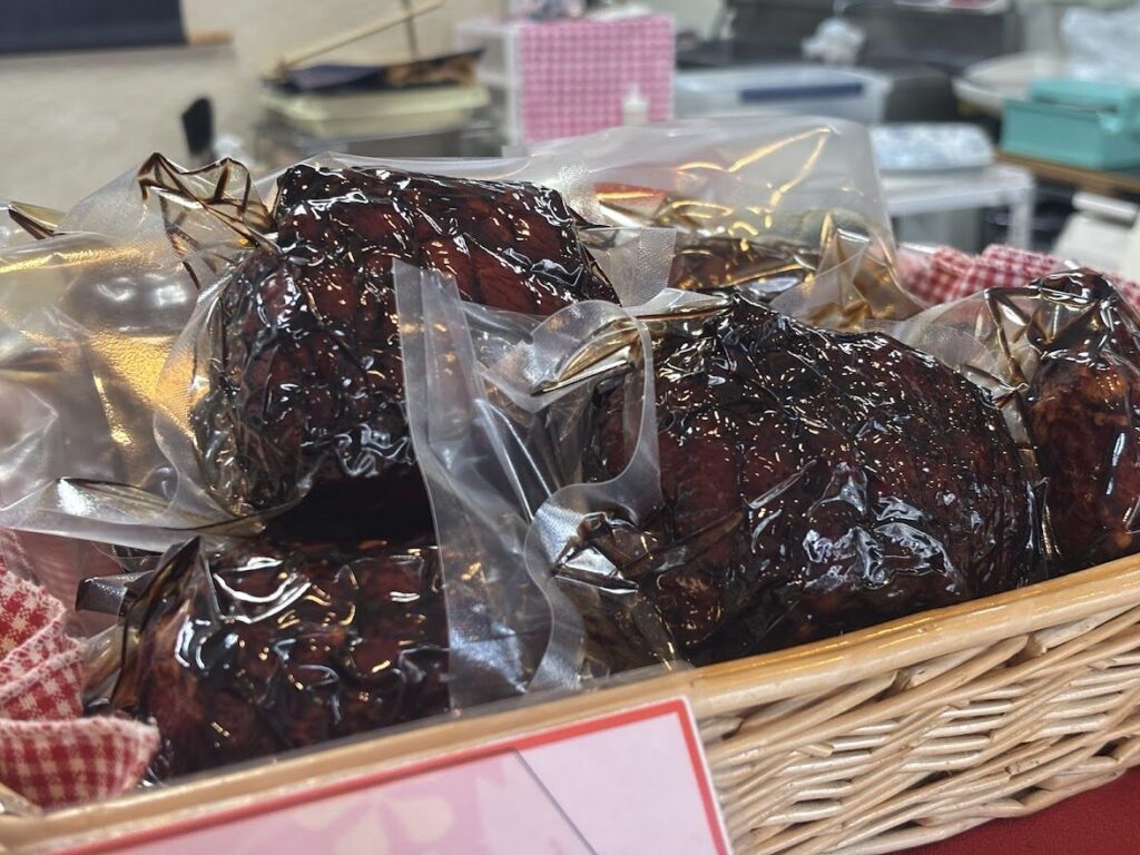 昔は炭焼豚を1キロ近い大きな塊で売っていたそうですが、今は400〜500グラムの食べきりサイズが主流です。