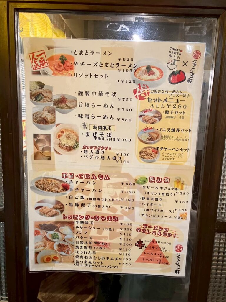 • とまとラーメン: 近年、口コミで人気が爆発しているのがこちら。豚骨ベースのスープにトマトの酸味が効いた、まるでイタリアンのような一杯。バジルを練り込んだ麺や、Wチーズのトッピングもあり、その意外性が多くの人の好奇心を刺激しています。